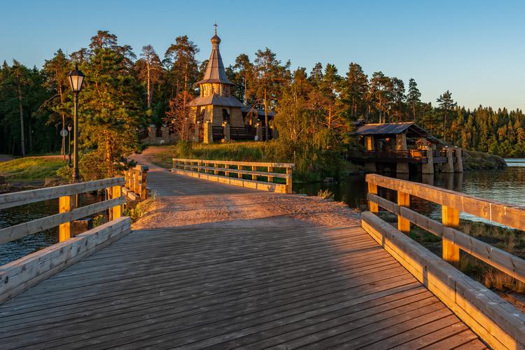 В вечерних сумерках проступают белокаменные очертания одного из самых грандиозных монастырских архитектурных комплексов страны. Это святое место являлось центром распространения русской культуры на северные земли карелов и вепсов. Обитель была основана в XVI веке на месте явления Святой Троицы преподобному Александру Свирскому. Гармоничные пропорции и ухоженная территория напоминают о том, что монастырь возводился «по образу града Божьего на земле».